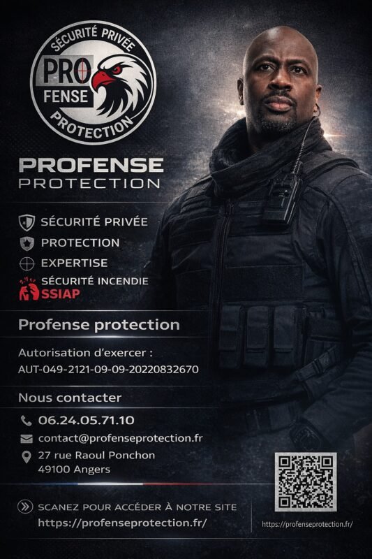 Profense Protection est une société angevine de sécurité spécialisée dans la gestion et la prévention des risques pour assurer la sécurité, la surveillance, et le gardiennage des biens et des personnes. Disponible 24h/24 et 7j/7, nous mettons au point de solutions personnalisées adaptées aux spécificités de chaque client, et investissons sans cesse dans la formation de nos équipes, leur professionnalisme, leur présentation et leur attitude afin de proposer un service d’excellence, et véhiculer ainsi la meilleure image de marque de nos clients.